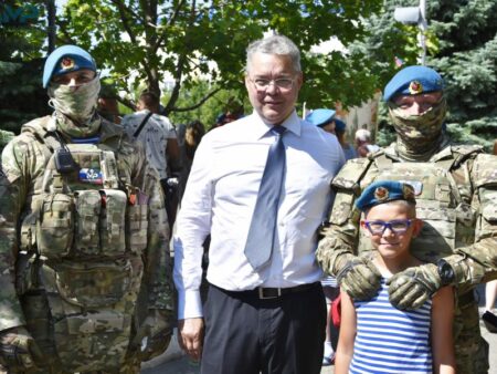 Глава Ставрополья Владимир Владимиров принял участие торжественных мероприятиях в честь Дня ВДВ в 247-м Гвардейском десантно-штурмовом Кавказском Казачьем полку в краевом центре. В этом году ВДВ отмечают 94-ю годовщину со дня образования.